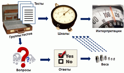 К ответам привязываются веса (или весовые значения), определяющие степень влияния данного ответа на конечный результат по некоторой предопределенной шкале.