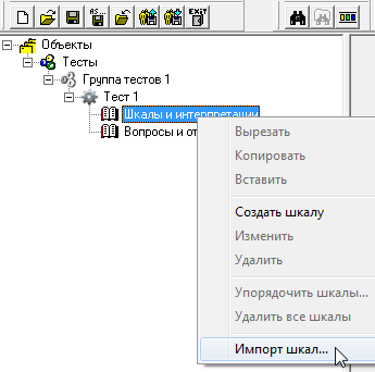 На узле «Шкалы и интерпретации» выберите контекстное меню «Импорт шкал...».