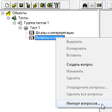 На узле «Вопросы и ответы» выберите контекстное меню «Импорт вопросов...».
