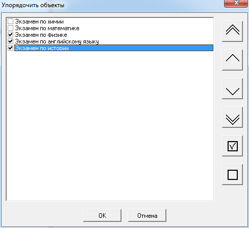 Чтобы сохранить изменения порядка следования объектов в проекте, нажмите кнопку OK, чтобы вернуться к предыдущему порядку следования и отменить все сделанные в данном окне изменения – нажмите кнопку «Отмена».
