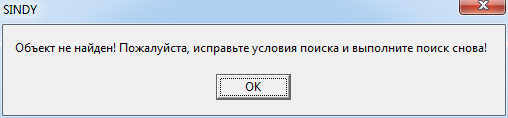 Результатом поиска в обоих случаях является выделенный узел на дереве узлов. Если же в ходе поиска узлов, соответствующих установленному критерию не обнаружено, то будет выведено следующее сообщение.