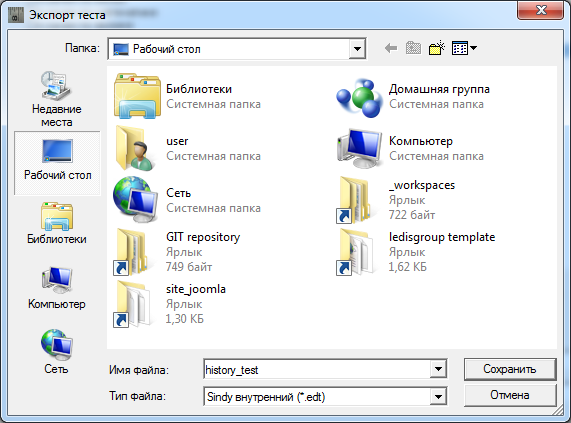 Данное окно позволяет выбрать файл, в котором будет сохранена информация об экспортируемом тесте. При этом доступны следующие типы файла для сохранения теста: