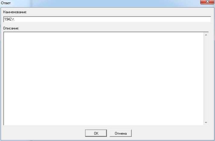 Наименование всегда показывается на дереве Конструктора тестов в виде узла теста. Описание используется пользователем лишь в справочных целях для сохранения дополнительной информации о тесте.