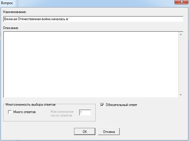 В поле «Описание» укажите любую полезную информацию, относящуюся к данному тесту.