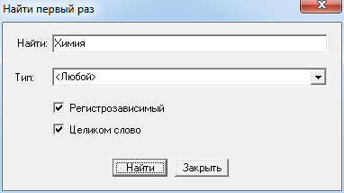 Чтобы начать поиск, используя установленные критерии поиска, нажмите кнопку «Найти», чтобы отменить поиск – нажмите кнопку «Закрыть».