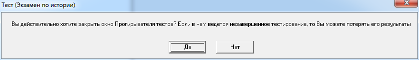 Попытка закрытия дочернего окна приводит к появлению специального диалога для окончательного закрытия окна теста.
