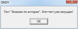 Несмотря на то, что может быть открыто любое число окон запущенных тестов, тем не менее, запрещен повторный запуск одного и того же теста. В случае повторного запуска уже запущенного теста программа выведет предупреждение примерно следующего вида: