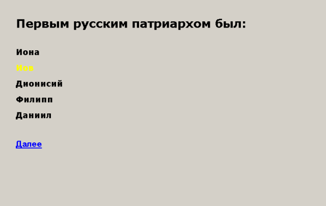 Выбранный любым образом (мышью или клавиатурой) ответ изменит свой цвет.