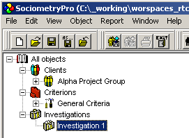 - Select “Investigation 1” sociometry testing node in SociometryPro.