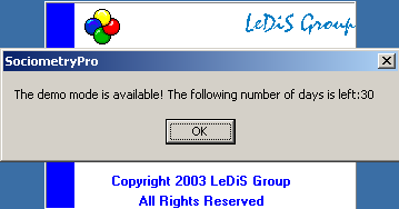 - Start SociometryPro from program group “SociometryPro from LeDiS Group” (pass through “Start” button of Windows)