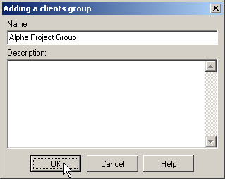 - In the window "Adding a clients group", input group name "Alpha Project Group" and press OK.