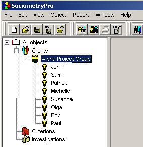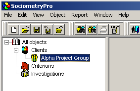 Some client group must be always defined in sociometry investigation. Hence, you have to create a client group data in the program. After that, you have to add clients’ data into this group. During the sociometry testing, the clients of this group will make their choices in accordance to predefined criterion (sociometry question).