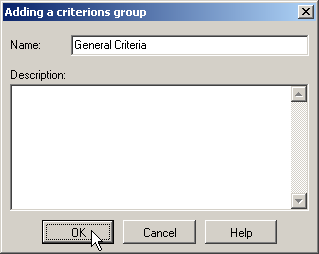 - In the window “Adding a criterions group”, input criteria group name "General Criteria" and press OK.