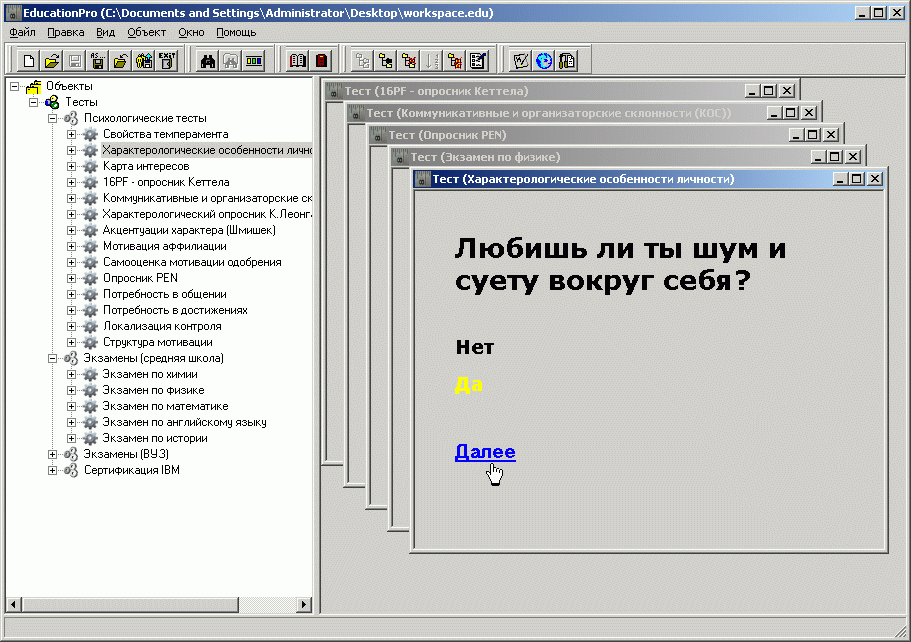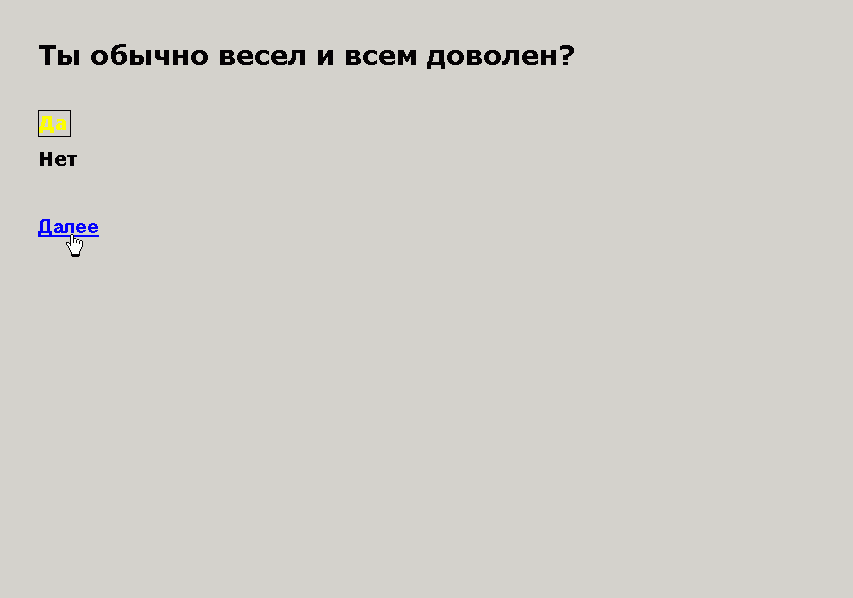 Тест может быть запущен в полноэкранном режиме, что исключает влияние других экранных элементов на респондента при тестировании. Респондент может отвечать на вопросы теста, выбирая ответ с помощью мышки или клавиатуры.