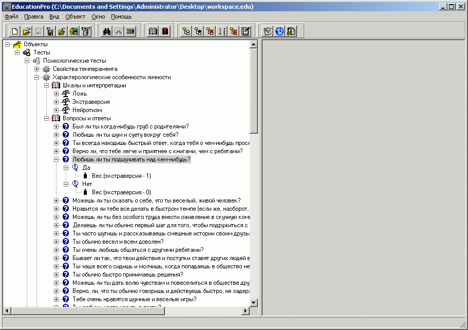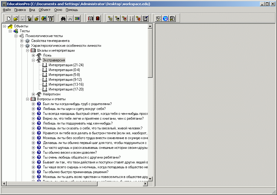 В главном окне представлен набор инструментов, отображающих упорядоченные социометрические объекты на левой панели. Правая сторона позволяет открыть детальное представление различных социометрических аспектов пройденного тестирования. Это означает, что все, что вам нужно, это всего лишь выбрать объект слева и затем открыть любое из доступных представлений этого или иного объекта справа. При работе с представлениями вы можете открыть множество из них для отображения презентаций нескольких объектов, что может быть крайне удобно при их сравнении друг с другом.
