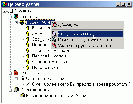 Дерево объектов служит для того, чтобы удобно упорядочить Ваши данные в левой части главного окна программы. Наглядное иерархическо представление позволяет легко перемещаться и находить необходимые элементы. Если элемент найден, то Вы может открыть одно из доступных представлений в правой части окна SociometryPro. В результате Ваши данные всегда будут под рукой, и Вам не придется их долго искать.